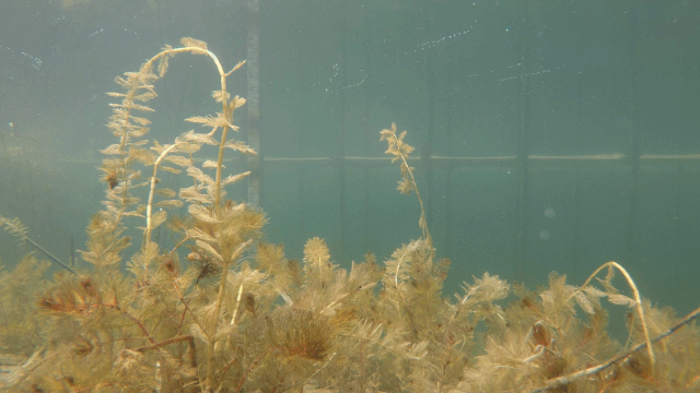 T1池出現(xiàn)自然生長(zhǎng)的水下森林。eaS新型光催化網(wǎng)_水庫治理_河道治理_水生態(tài)修復(fù)_水環(huán)境治理與修復(fù)_江蘇雙良環(huán)境科技有限公司