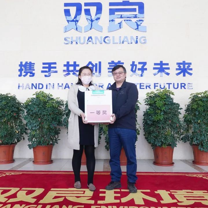公司為積極參與攝影征集活動(dòng)及獲獎(jiǎng)的員工準(zhǔn)備了豐富的獎(jiǎng)品,由雙良環(huán)境副總經(jīng)理許亮為他們頒獎(jiǎng)。Xx1新型光催化網(wǎng)_水庫(kù)治理_河道治理_水生態(tài)修復(fù)_水環(huán)境治理與修復(fù)_江蘇雙良環(huán)境科技有限公司