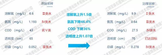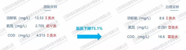 治理后為Ⅲ類水標準,其中氨氮指標大幅度下降。gaP新型光催化網_水庫治理_河道治理_水生態(tài)修復_水環(huán)境治理與修復_江蘇雙良環(huán)境科技有限公司