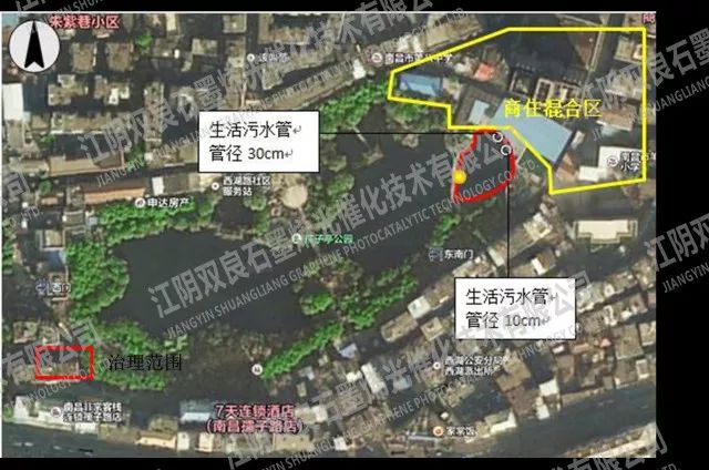 該項目位于安徽省淮南市政府服務中心西側,所需治理黑臭水體斷面全長約190m,河道寬度約13m,水深0.8m左右,總面積為2470㎡。gaP新型光催化網_水庫治理_河道治理_水生態(tài)修復_水環(huán)境治理與修復_江蘇雙良環(huán)境科技有限公司