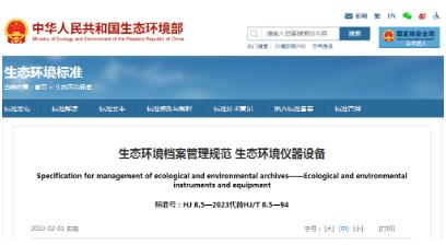 05《生態(tài)環(huán)境檔案管理規(guī)范 生態(tài)環(huán)境儀器設(shè)備》(HJ 8.5-2023)