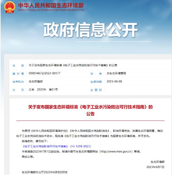 04關(guān)于發(fā)布國(guó)家生態(tài)環(huán)境標(biāo)準(zhǔn)《電子工業(yè)水污染防治可行技術(shù)指南》的公告