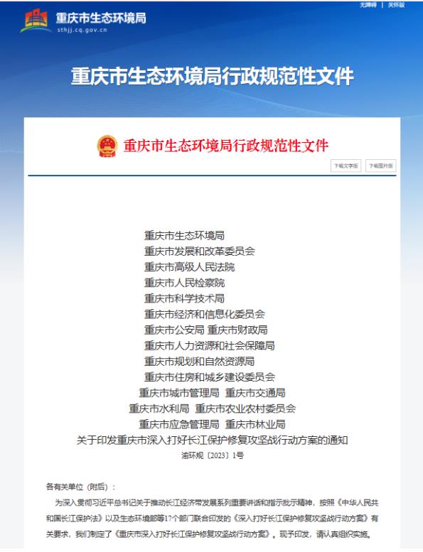 重慶市生態(tài)環(huán)境局聯(lián)合重慶市發(fā)展和改革委員會(huì)等共17部門(mén)共同發(fā)布《重慶市深入打好長(zhǎng)江保護(hù)修復(fù)攻堅(jiān)戰(zhàn)行動(dòng)方案》,通過(guò)持續(xù)深化水環(huán)境綜合治理,大力推進(jìn)水生態(tài)環(huán)境保護(hù)修復(fù),切實(shí)加強(qiáng)水資源保護(hù),全力保障水環(huán)境安全,加快形成綠色發(fā)展管控格局等措施,深化綜合治理、系統(tǒng)治理、源頭治理,協(xié)同推進(jìn)高質(zhì)量發(fā)展和生態(tài)環(huán)境高水平保護(hù),筑牢長(zhǎng)江上游重要生態(tài)屏障,推動(dòng)山清水秀美麗之地建設(shè)取得重大進(jìn)展。
