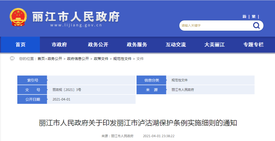4肆-麗政規(guī)(2021)3號(hào)關(guān)于印發(fā)麗江市瀘沽湖保護(hù)條例實(shí)施細(xì)則的通知