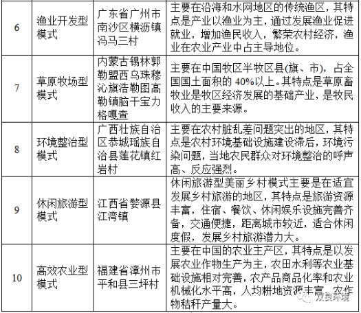 國家農(nóng)業(yè)部于2013年啟動(dòng)了“美麗鄉(xiāng)村”創(chuàng)建活動(dòng),于2014年2月正式對外發(fā)布美麗鄉(xiāng)村建設(shè)十大模式,為全國的美麗鄉(xiāng)村建設(shè)提供范本和借鑒。具體而言這十大模式分別為:產(chǎn)業(yè)發(fā)展型、生態(tài)保護(hù)型、城郊集約型、社會(huì)綜治型、文化傳承型、漁業(yè)開發(fā)型、草原牧場型、環(huán)境整治型、休閑旅游型、高效農(nóng)業(yè)型。