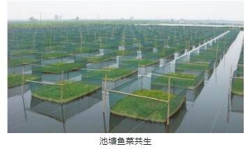 池塘魚菜共生是利用魚類與植物的共生互補(bǔ)特性,在池塘水面進(jìn)行無土栽培,將水產(chǎn)養(yǎng)殖和蔬菜種植有機(jī)結(jié)合,實現(xiàn)池塘“魚-水生植物”生態(tài)系統(tǒng)內(nèi)物質(zhì)循環(huán),達(dá)到傳統(tǒng)池塘養(yǎng)殖的生態(tài)化、休閑化和景觀化三化融合效果,是一項可持續(xù)發(fā)展的生態(tài)型農(nóng)業(yè)技術(shù)。池塘魚菜共生可實現(xiàn)池塘養(yǎng)殖廢棄物氮、磷等原位減控與消納利用,修復(fù)和保育池塘生態(tài)環(huán)境,提高養(yǎng)殖池塘綜合效益。