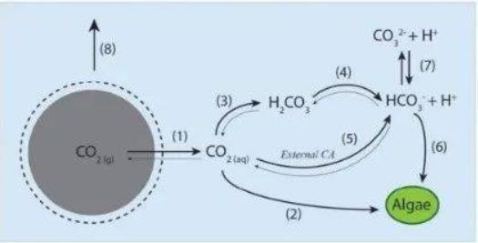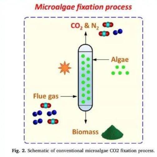 利用微藻高效的光合作用,可以吸收和利用大量的二氧化碳,具有固碳效率高、定點固碳、高附加值產(chǎn)品相結(jié)合等顯著優(yōu)勢,將化石燃料燃燒等工業(yè)生產(chǎn)過程中產(chǎn)生二氧化碳固定的同時生物轉(zhuǎn)化為微藻生物質(zhì),可以作為食品、餌料、飼料、肥料,或者經(jīng)過進一步加工生產(chǎn)生物柴油、生物塑料等。此外,吸收的二氧化碳可以進入碳交易市場進行銷售。