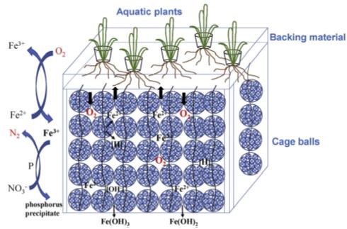 圖2:富鐵基質(zhì)的生態(tài)浮床系統(tǒng)的機理分析Egk新型光催化網(wǎng)_水庫治理_河道治理_水生態(tài)修復(fù)_水環(huán)境治理與修復(fù)_江蘇雙良環(huán)境科技有限公司