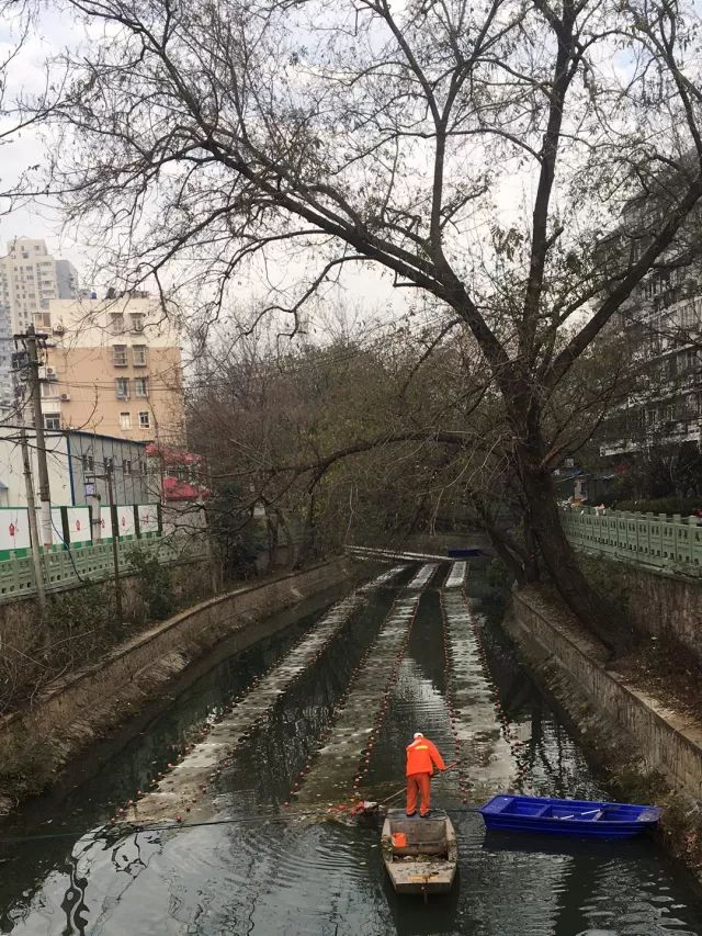 2017年12月21日,內(nèi)秦淮河中段,施工人員在實施石墨烯光催化網(wǎng)的鋪設(shè)。2gk新型光催化網(wǎng)_水庫治理_河道治理_水生態(tài)修復(fù)_水環(huán)境治理與修復(fù)_江蘇雙良環(huán)境科技有限公司