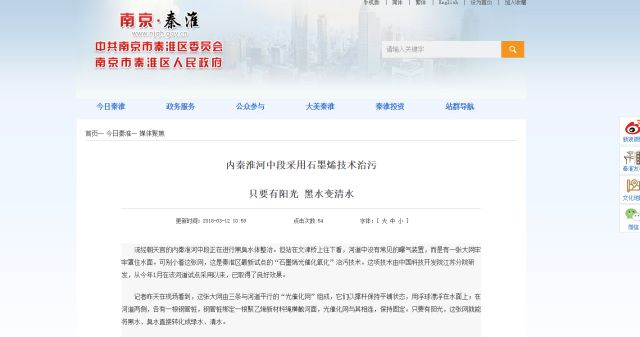 南京日報一篇名為“內(nèi)秦淮河中段采用石墨烯技術(shù)治污——只要有陽光 黑水變清水”的新聞報道引起了讀者們的興趣。2gk新型光催化網(wǎng)_水庫治理_河道治理_水生態(tài)修復(fù)_水環(huán)境治理與修復(fù)_江蘇雙良環(huán)境科技有限公司