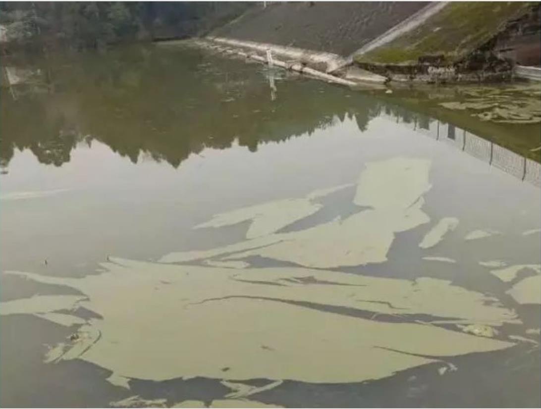 治理前水庫取水點局部水面出現(xiàn)大量藻類,水體發(fā)綠,透明度僅為40cm,感官較差。 SgE新型光催化網(wǎng)_水庫治理_河道治理_水生態(tài)修復(fù)_水環(huán)境治理與修復(fù)_江蘇雙良環(huán)境科技有限公司